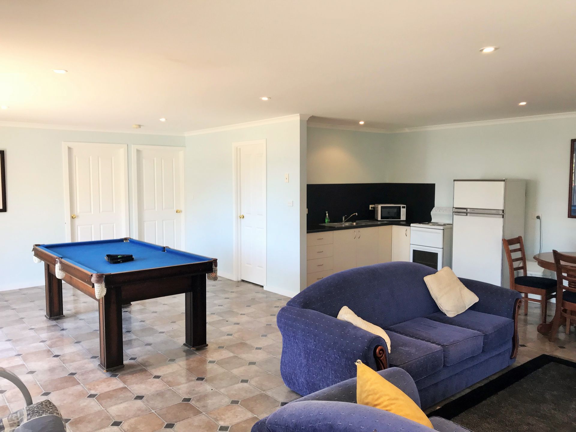 Downstairs: we have another 2 bedrooms with an enormous living area currently set up as a pool room, 2nd bathroom with shower, vanity and toilet, along with another kitchen.