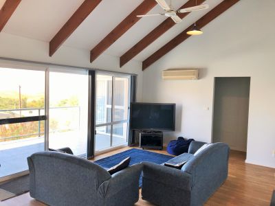 Upstairs: Spacious open plan living, split system air con, big open plan kitchen/ dinning with a breakfast bar for all the family to sit at. 2 separate living areas plus 3 bedrooms, the main bedroom has an ensuite. Full size bathroom upstairs has a spa bath, large front balcony with glass balustrade to soak up the sunsets with a glass of bubbly in hand.