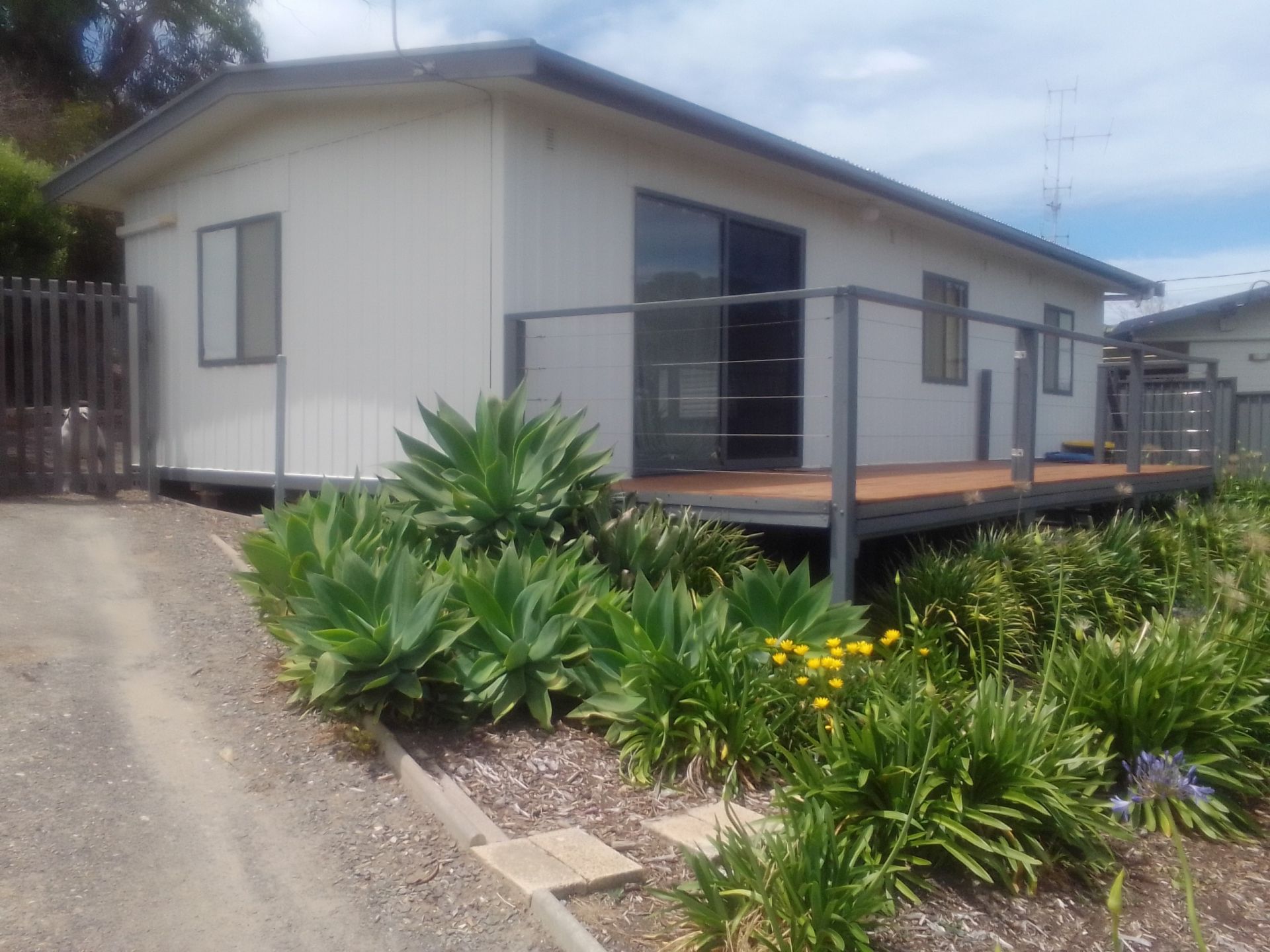 2 bedroom older-style home situated on a large fenced allotment of approximately 800sqm. Charming compact kitchen with adjacent generous living and dining room. Sliding glass doors spill onto a large deck boasting views down to the ocean. Rear garden is huge with a large lawned area and garage with roller door and a separate garden shed.