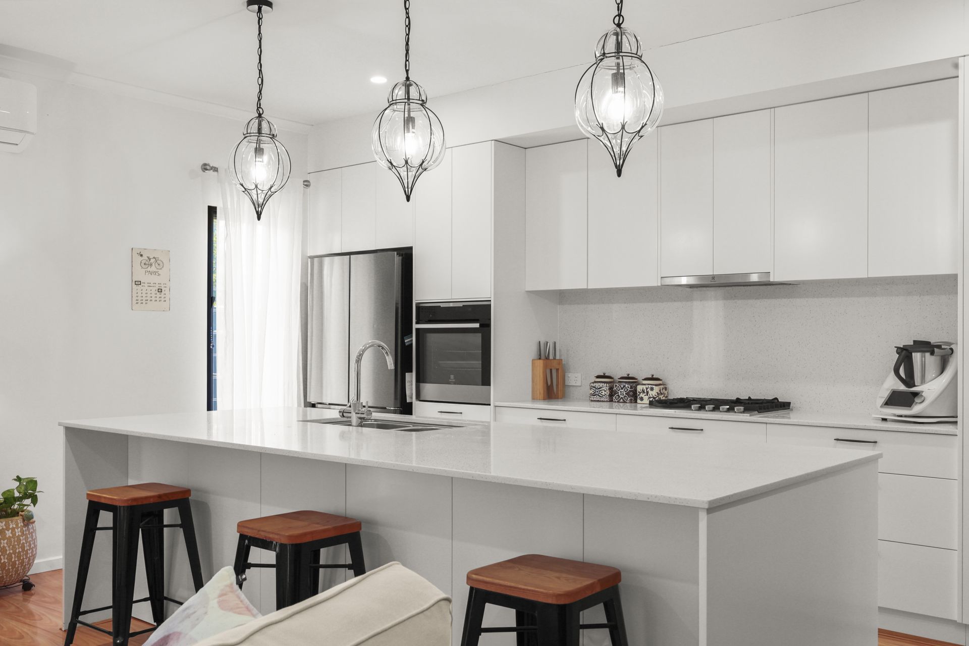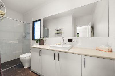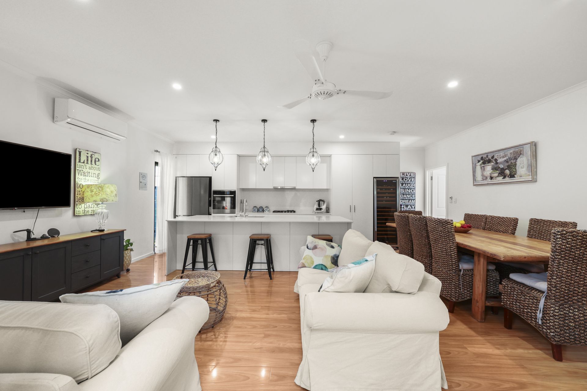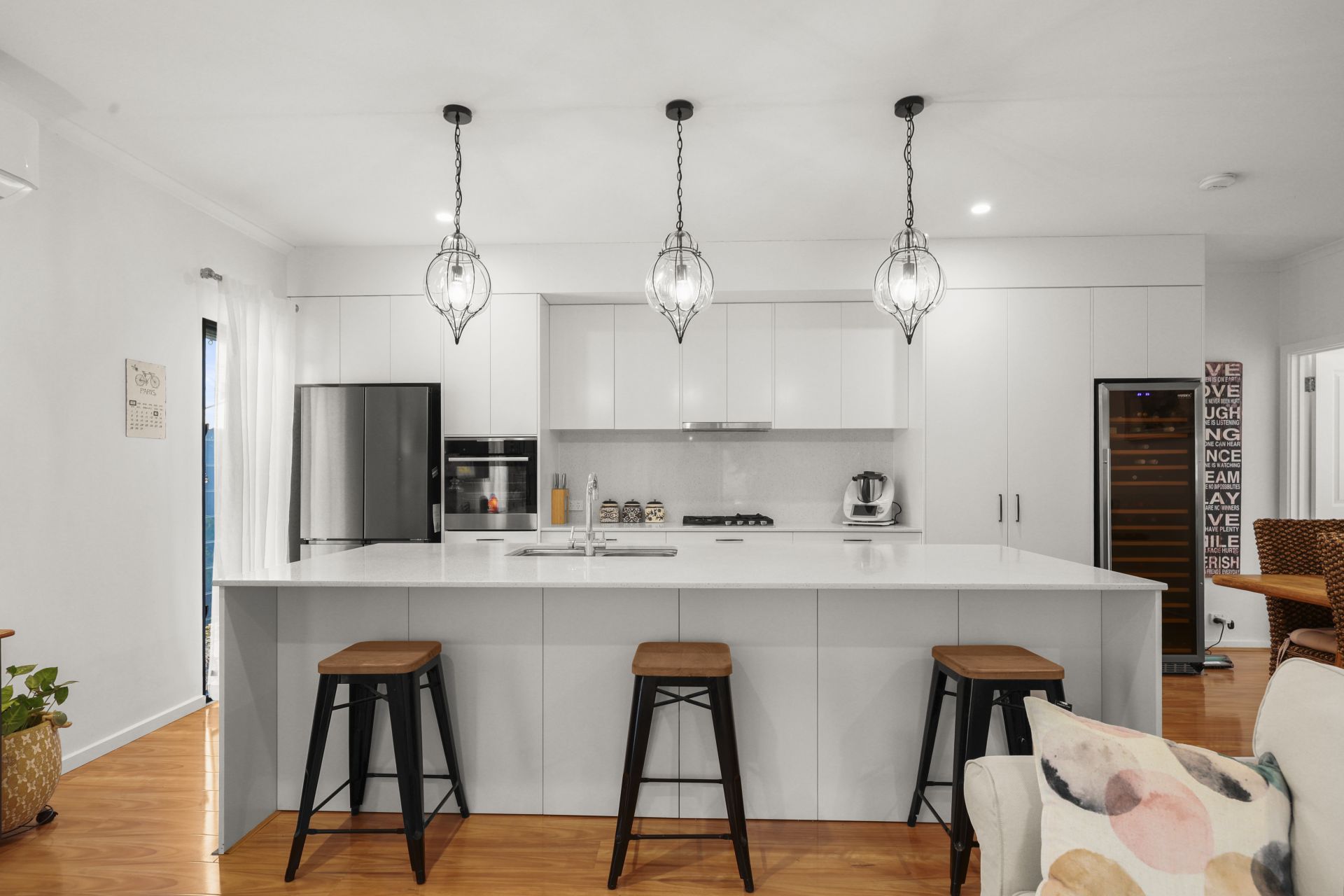 - Stylish kitchen with stone benchtops and splashback, self-cleaning wall oven, plumbed fridge and excellent storage