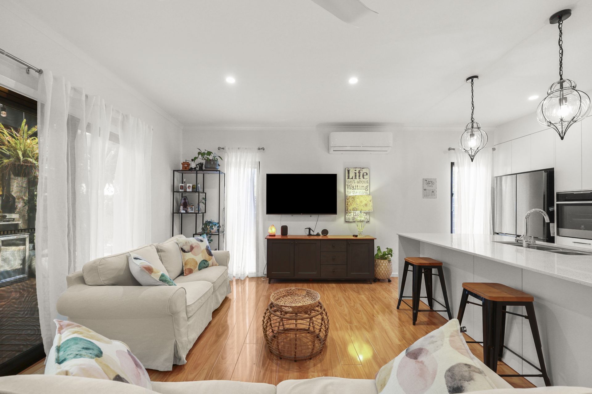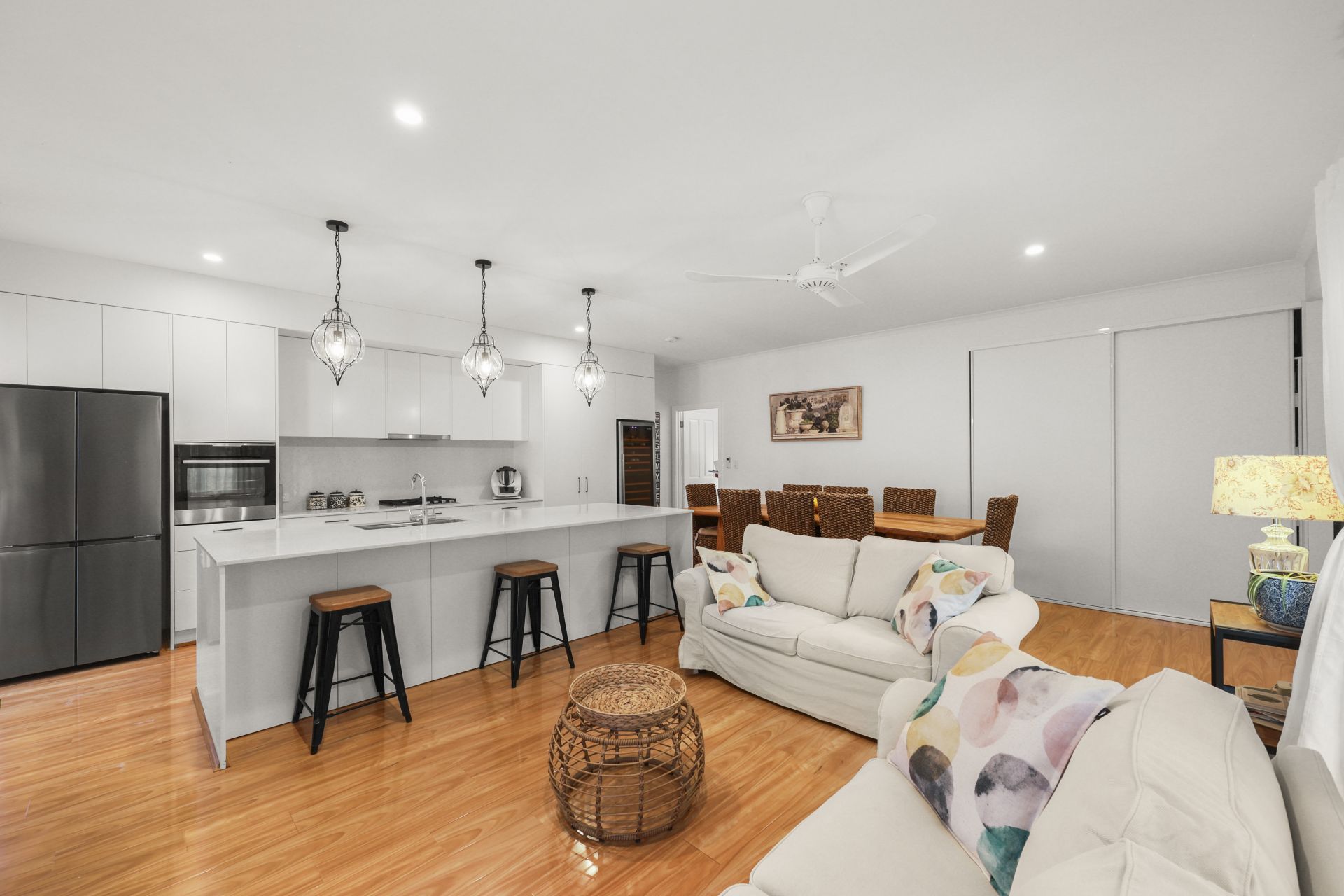 - Ceiling fans and downlighting throughout